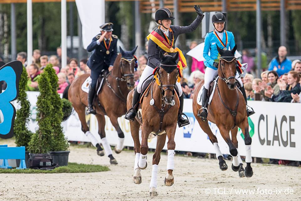 Tym samym ta amazonka po raz pierwszy w karierze zdobyła tytuł Mistrzyni Niemiec, choć ma już w swoim dorobku złote medale Mistrzostw Europy, Świata i Igrzysk Olimpijskich. Również Ingrid Klimke i Horseware Hale Bob OLD zachowali swój wynik z czworoboku ( 36,60 pkt.) i tym samym zajęli drugie miejsce w obu klasyfikacjach. Trzeci w CIC3* był Tim Lips/NED na wałachu Bayro N.O.P., który zakończył zawody bezbłędnym przejazdem na parkurze. Czwarte miejsce w konkursie i trzecie w mistrzostwach kraju zajął Andreas Ostholt/GER na klaczy Pennsylvania, który ukończył zmagania z wynikiem 46,50 pkt.