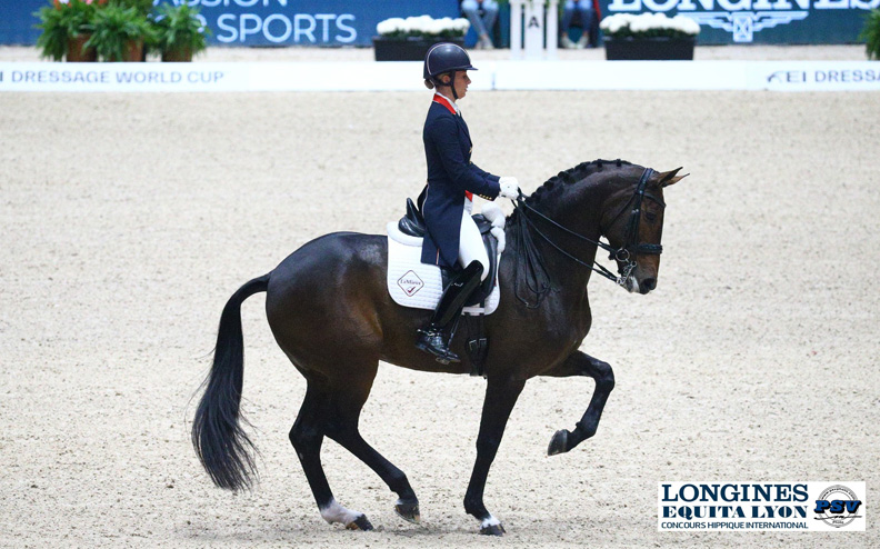 I zdecydowanie zwyciężyła we wczorajszym Grand Prix rozgrywanym podczas zawodów Equita Lyon. Konkurs ten był kwalifikacją do dzisiejszego Pucharu Świata i wiele wskazuje na to, że Brytyjka będzie jedną z największych kandydatek do zajęcia w nim pierwszego miejsca. Dujardin dosiadała wczoraj 10-letniej klaczy Mount St John Freestyle (Fidermark – Donerhall II). Ostatni występ tej pary miał miejsce podczas Mistrzostw Europy w Rotterdamie, ale nie zakończył się on dla niej zbyt szczęśliwie (TUTAJ). W odróżnieniu od wczorajszego startu – za swój bezbłędny przejazd otrzymała ona ocenę 79,978%.