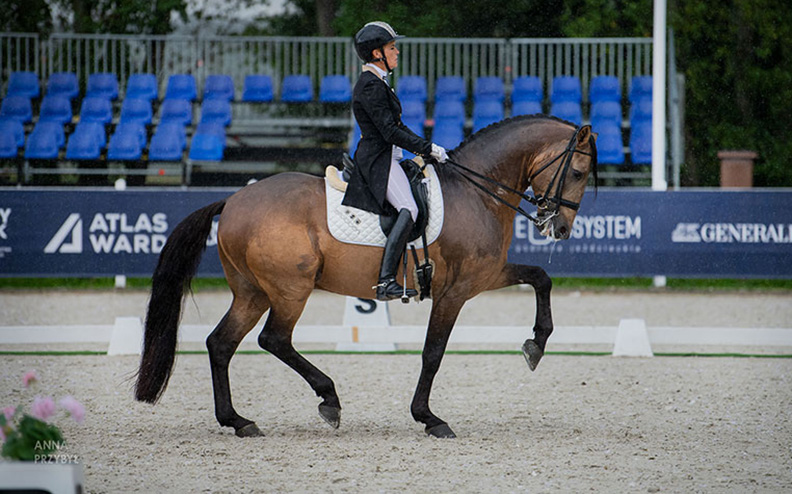 Po drugie zwycięstwo w kategorii Juniorów sięgnęła dzisiaj Caroline Pawluk w starcie na niemieckim wałachu FATUM 8. Zwycięski przejazd, który też pozwolił na utrzymanie prowadzenia w tabeli, sędziowie ocenili na 69,395%. Miejsce drugie ponownie zajęła Natalia Plata startująca na hanowerskim wałachu DOLCETTO. Ich dzisiejszy przejazd oceniono na 68,737%. Na miejscu trzecim II półfinał ukończył Dionizy Polikowski. Wynik jaki zawodnik uzyskał w przejeździe na wałachu rasy KWPN CHARMEUR to 67,106%.