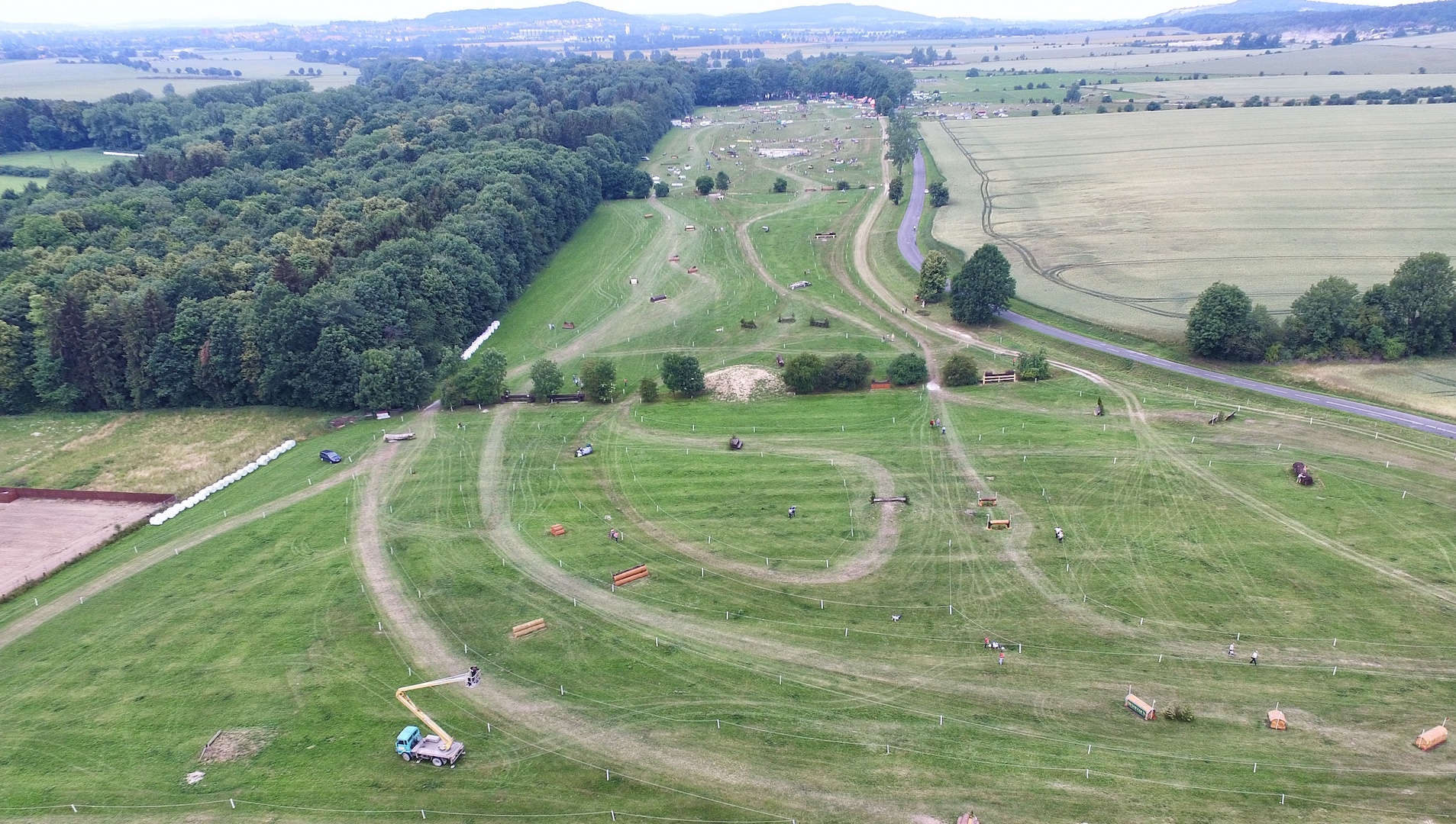Po tym intensywnym odcinku, kolejny czas na krótki odpoczynek i spory kawałek galopu. Zawodnicy wjeżdżają na nowopowstałą trasę w lesie i wyskakują z niej przez piękną przeszkodę ułożoną z balików drewna. Następnie po łuku duża wąska przeszkoda. 17/18, bo o nich tu mogą to przeszkody sponsorowane przez Devocoux. Trochę galopu przeplatanego przeszkodami 19, 20, 21 oraz 22. Już w okolicach małej przeszkody wodnej zaczyna się kolejny bardzo intensywny odcinek trasy. Najpierw potężny corner na szczycie góry Hoeveler, a następnie galop do kombinacji wodnej PODA. Jeszcze przed przejazdem przez drogę czeka oxer Hertz, a następnie przed zawodnikami wyrastają dwie pokaźne kombinacje. Bramy opatrzone logiem Dolnego Śląska oraz traktory Ursus. Po nich jeźdźcy są już na dobrej drodze do mety. Ostatni stół, a następnie ostatnia przeszkoda. Granitowy mur miasta Strzegom.