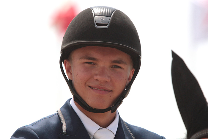 W tej kategorii wiekowej mieliśmy swojego reprezentanta. Andrzej Opłatek dosiadający 11-letniego wałacha EL Camp wszedł do dzisiejszego finału na trzeciej pozycji z wynikiem wynikającym z pierwszego półfinału – konkursu szybkości 3,02 pkt. karnego. Medalowa szansa chyba zbyt mocno obciążyła psychikę młodego Polaka, bo w pierwszym nawrocie finału wyraźnie usztywniony zanotował dwa błędy. Źle wymierzony odskok na okser nr 2 przyniósł pierwszą zrzutkę. Za mało dynamiczna jazda w podwójnym szeregu nr 5 składającego się z dwóch okserów spowodowała, że El Camp w zbyt krótkim locie zrzucił drągi drugiego członu. W efekcie tych błędów Andrzej spadł na 16. miejsce w klasyfikacji łącznej Mistrzostw. W drugim nawrocie, wolny od medalowego obciążenia po raz kolejny pokazał na co go stać i po bezbłędnym przejeździe awansował w klasyfikacji końcowej Mistrzostw Europy juniorów w skokach na 8. miejsce.