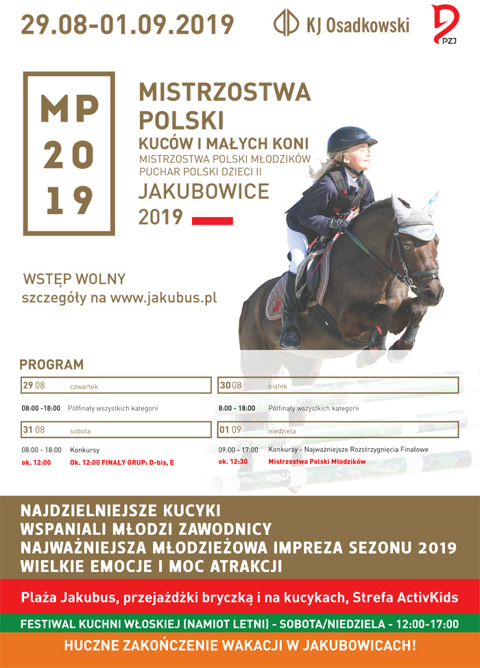 Już od środy ruszy mistrzowska karuzela w Jakubowicach. Zawodnicy zgłoszeni do Mistrzostw i Pucharu Polski Kuców, Małych Koni i Dzieci II dosiadać będą aż 270 koni i podzielą między siebie medale 7 kategorii.