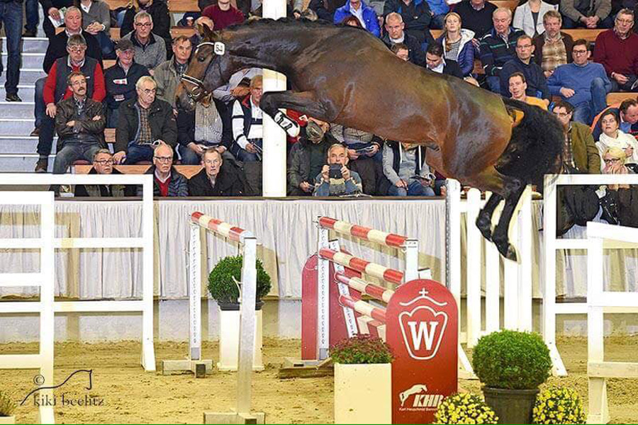 Przedstawiono łącznie 70 ogierów, spośród których uznano 42 – 28 ujeżdżeniowych i 14 skokowych. I mimo, że ta druga grupa była mniej liczna, to właśnie wśród nich znalazł się wyjątkowy ogier. A był nim gniady ogier KARAJAN (po Kannan od klaczy Vilja po Verdi – Cornet Obolensky) . Ten hanowerski ogier zachwycił wszystkich swoimi możliwościami skokowymi, elastycznością i siłą i chyba nikt nie miał wątpliwości, że to on otrzyma szarfę zwycięzcy wśród ogierów skokowych. Jego wyjątkowa jakość potwierdzona została później podczas aukcji, kiedy to został on sprzedany za 620 000€. Jego nowymi właścicielami są dwie renomowane stajnie: Klosterhof Medingen i Gestüt Fohlenhof.
