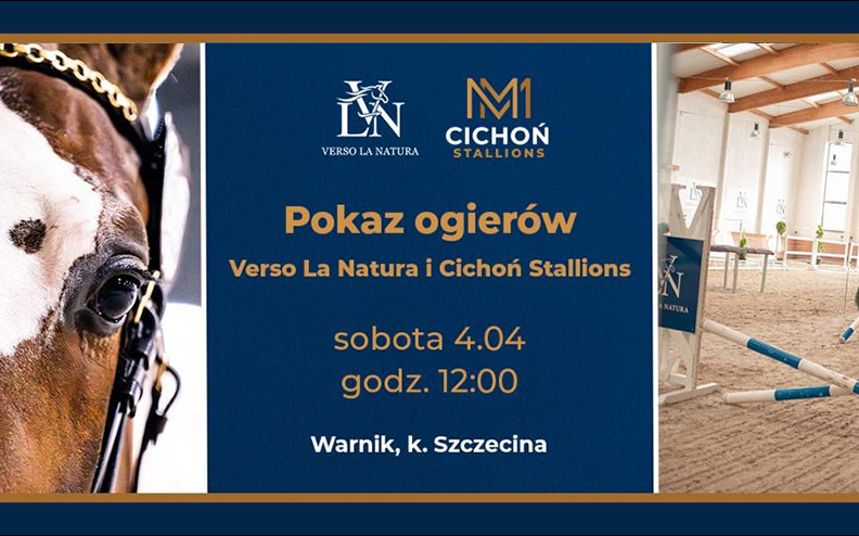 W najbliższą sobotę - 4 kwietnia stacje ogierów Verso La Natura i Cichoń Stallions zapraszają do Warnika, k. Szczecina, wszystkich hodowców i miłośników koni, którzy chcieliby obejrzeć "na żywo" stawkę wysokiej klasy reproduktorów skokowych i ujeżdżeniowych oferowanych w ramach tej nowej na polskim rynku hodowlanym kooperacji.
