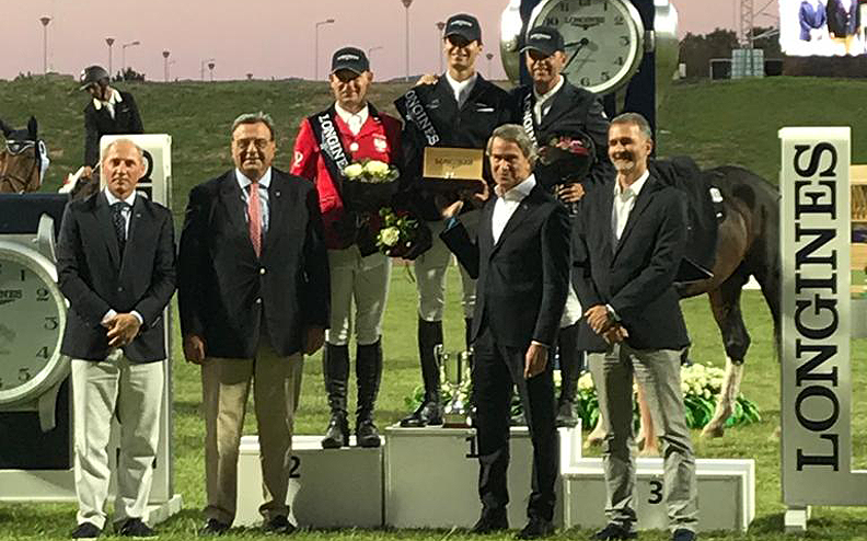 Jako pierwsza w rozgrywce wystartowała Hege Tidemandsen/NOR na wyhodowanym przez Tadeusza Pilipca wałachu Carvis (Cantanis – Capitol II). Bezbłędny przejazd w czasie 43,83 s dał jej 6 miejsce. Kilka minut później na parkurze pojawił się Wojciech Wojcianiec na Chintablue. Bardzo dobry i szybki przejazd dał mu prowadzenie z wynikiem 0 pkt. w czasie 40,44 s. Jednak nie utrzymał on prowadzenia do końca bowiem Rodrigo Almeida okazał się szybszy. Jako ostatni na parkur wjechał Jan Bobik na Farmerze. Błąd na drugiej przeszkodzie przekreślił szansę na zwycięstwo, kolejny drąg spadł na ostatniej i nasz zawodnik ukończył Grand Prix na 9 miejscu.