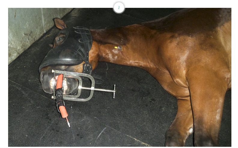 - Niewydolność oddechowa – Kolejna sytuacja, która może zaważyć o życiu zwierzęcia. Przyczyn takiej niewydolności może być wiele, często doprowadzają do niej choroby, które dotykają zwierzę od dłuższego czasu. Ważna jest odpowiednia diagnostyka, opieka i przywrócenie drożności dróg oddechowych – często konieczna jest operacja. Zabiegiem ratującym życie w przypadku problemów z górnymi drogami oddechowymi jest zabieg tracheotomii przedstawiony na zdjęciu. Nacięcie tchawicy umożliwia dostanie się powietrza bezpośrednio do płuc i oskrzeli. Problemy z układem oddechowym są jednym z najczęstszych problemów zdrowotnych dzisiejszych koni. Powinniśmy regularnie badać konie i zapewniać im jak najlepszą opiekę. W szczególności uważać na konie dotknięte chorobami takimi jak np. RAO czy dychawicą świszczącą.