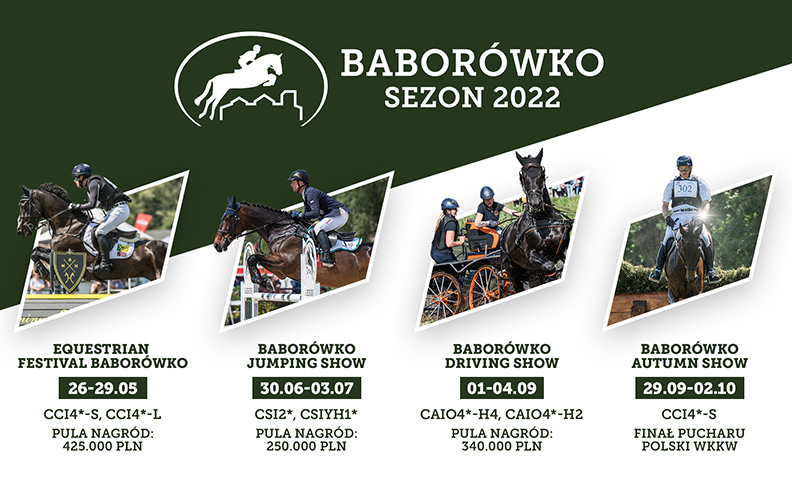 Sezon rozpocznie flagowa impreza Baborówka we Wszechstronnym Konkursie Konia Wierzchowego – Equestrian Festival Baborówko, który odbędzie w dniach 26–29.05.2022 roku. Będzie to już 15. edycja tego wydarzenia, w którym w poprzednich latach brały udział takie gwiazdy światowego jeździectwa, jak: Oliver Townend (GBR), Michael Jung (GER) czy Ingrid Klimke (GER). W 2022 roku podczas Festiwalu zawodnicy będą rywalizować m.in. w konkursach na poziomie CCI4*-L i CCI4*-S, a w ramach tego drugiego – ponownie w Baborówku zostaną rozegrane Mistrzostwa Polski Seniorów WKKW. Łączna pula nagród finansowych wyniesie 425 000 zł, co po raz kolejny pozwoli plasować to wydarzenie w pierwszej dziesiątce najwyżej dotowanych imprez WKKW na świecie.