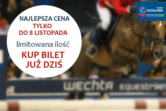 Bądź zawsze pierwszy i nie czekaj! Tylko do 8 listopada można kupić bilety na CAVALIADĘ Poznań w najkorzystniejszej cenie. Im bliżej CAVALIADY, ceny będą rosnąć, a wolne miejsca na trybunach ubywać.