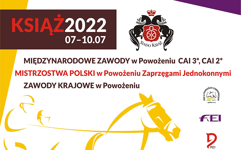 Już 7 lipca zapraszamy do Stada Ogierów Książ gdzie przez 4 dni w malowniczej scenerii Książańskiego Parku Krajobrazowego odbywać się będą Międzynarodowe Zawody Zaprzęgowe CAI 3*, CAI 2* oraz Zawody Krajowe w Powożeniu. Zawodnicy walczyć będą na rozległym terenie Stada Ogierów Książ znajdującym się w sąsiedztwie Zamku Książ.