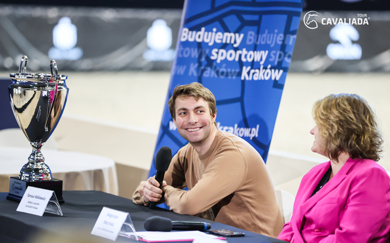W środę na arenie TAURON Areny Kraków odbyła się konferencja prasowa w której wzięli udział: Jakub Patelka - Dyrektor CAVALIADA Tour, Szymon Tarant - Dyrektor Sportowy CAVALIADA Tour, Iwona Kubańska - Dyrektor Regionu Bankowości Detalicznej w PKO Banku Polskim w Krakowie, Krzysztof Kowal - Dyrektor Zarządu Infrastruktury Sportowej w Krakowie, Małgorzata Marcińska - Prezes TAURON Arena Kraków i Tomasz Miśkiewicz - Mistrz Polski w skokach przez przeszkody 2023, lider rankingu Polskiego Związku Jeździeckiego.