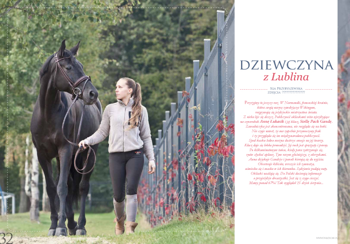 Początek roku był bardzo trudny, bo miałyśmy kilka nieudanych startów. Zaczęło się od Torwaru. Popracowałyśmy przez zimę i wydawało się, że będzie dobrze, ale niestety bliska obecność publiczności sprawiła, że klacz była zestresowana. Zawodnik, który jechał przede mną, zebrał dużą owację, nawet zrobiono falę meksykańską. Czułam, jak z każdą minutą Stella Pack Granda robi się coraz sztywniejsza. Nie umiałam dogadać się z nią. To trudny koń, a poza tym dopiero zdobywa większe doświadczenia w startach typu Grand Prix. Kolejne zawody były w Zakrzowie. Niby nie było źle, ale dalej klacz była trudna do jazdy. Potem w Radzionkowie też było trochę problemów, a na koniec tej serii był start w Brnie, gdzie już w ogóle zaliczyłyśmy katastrofę, nie było tam na czworoboku żadnej kontroli i porozumienia między nami. Było jasne, że trzeba coś zmienić. Trener Richard White (trener ujeżdżeniowy, mąż Kyry Kyrklund – przyp. red.), który ma świetne podejście do koni i jeźdźców, bardzo nam pomógł i podpowiedział parę pomysłów. Pojechałyśmy na spokojnie zawody regionalne przed Normandią i udało się, wypadłyśmy bardzo dobrze. Czekało na nas jeszcze Verden przed mistrzostwami, ale nie dojechałyśmy tam, bo było trochę problemów ze zgłoszeniem. Zmartwiłam się, że się nie udało, bo liczyłam na to, że pozbędę się z pamięci ostatnich złych wrażeń na tak dużym konkursie i we Francji wystartujemy z lepszym nastawieniem. To, co ostatnio udało nam się osiągnąć, ta tendencja wzrostowa nie byłaby możliwa bez pomocy trenera Richarda. Jakoś tak się udało, że forma wróciła na mistrzostwa.