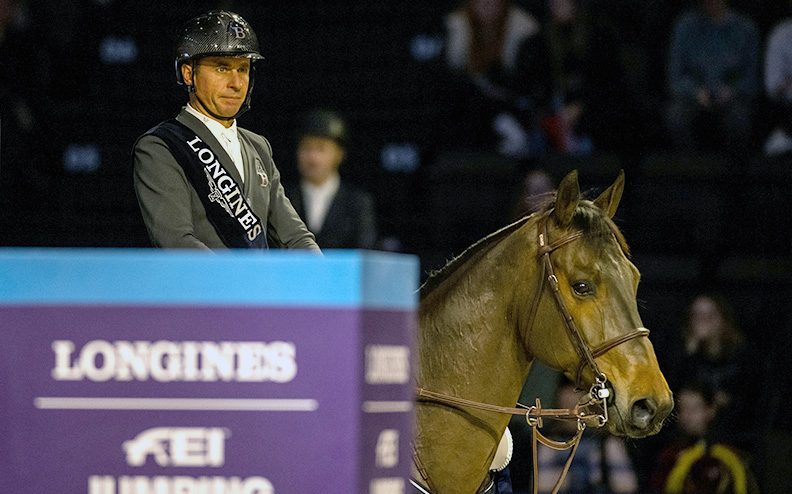 Po tym jak w piątkowym Grand Prix było aż 17 bezbłędnych przejazdów gospodarz toru zarówno w sobotę jak i w niedzielnym PŚ przygotował już trudniejsze parkury. Do rozgrywki niedzielnego PŚ zakwalifikowało się ostatecznie 8 par, ale ze startu w niej zrezygnował Michael Duffy/IRL, który tym samym zajął 8 miejsce. Julien Epaillard wystartował w niej jako pierwszy i tym samym wiedział, że swoim przejazdem musi wywrzeć na pozostałych zawodnikach presję. Na wałachu Donatello d’Auge nie zaryzykował skrótu na podwójny szereg, ale dobre tempo i rytm pozwoliły mu pokonać rozgrywkę w czasie 39,52 s. Kolejni zawodnicy podjęli większe ryzyko, ale przypłacili je błędami. Maikel van der Vleuten/NED postanowił pojechać bezpiecznie i na wałachu Beauville Z N.O.P. ukończył przejazd bez błędów w czasie 41,49 s. co dało mu ostatecznie miejsce 2 w klasyfikacji. Taką samą taktykę przyjął też Tim Gredley/GBR, który zajął na wałachu Imperial Hbf miejsce 3 (0/44,70 s). Najszybszy czas w rozgrywce należał do Martina Fuchsa/SUI i wałacha Commisar Pezi, ale zrzutka spowodowała, że ta para uplasowała się na 4 pozycji. Kolejne miejsca zajęli Ben Maher/GBR na wałachu Point Break (4/39,58 s) i Sandra Auffarth/GER na wałachu Quirici H. Ta zawodniczka, która bardziej znana jest ze startów w WKKW, doskonale spisuje się tez w najważniejszych konkursach w skokach. Siódmy w klasyfikacji był Kevin Staut/FRA, który swój przejazd na klaczy Vida Loca z ukończył z wynikiem 8 pkt.