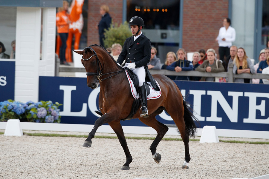 Na drugim miejscu uplasował się urodzony we Francji, wałach SULTAN DES PALUDS (HANN, Soliman de Hus – De Niro) dosiadany przez Kirsten Brouwer/NED. Jest to koń o ogromnym potencjale, ale i u niego sędziowie życzyliby sobie więcej rozluźnienia, przepuszczalności i lepszej pracy grzbietu. Przez większość przejazdu był on zbyt wysoko ustawiony przez amazonkę – wynik 83,515%.