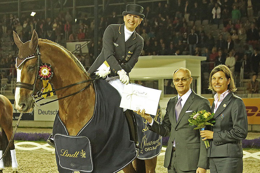 Wiele koni walczyło wczoraj z niełatwą atmosferą wokół czworoboku. Również Imperio, na którym Hubertus Schmidt wygrał w środę Grand Prix, miał kilka małych błędów. Para ta tym razem zajęła miejsce drugie z wynikiem 74,157%. A w konkursie zwyciężyła Anabel Balkenhol na wałachu Dablino FRH. Para ta zaprezentowała bardzo dobry przejazd, pełen elegancji, harmonii i lekkości, za który otrzymała 75,471%. „Jestem bardzo szczęśliwa, to niesamowite w jakiej formie jest Dablino. To wspaniały koń, który mimo iż ma 16 lat, nie stracił nic ze swojej charyzmy i ekspresji.” – powiedziała amazonka. Na trzecim miejscu uplasowała Jessica von Bredow-Werndl z ogierem Unee BB, która otrzymała od sędziów 73,941%. Niemieccy zawodnicy zdominowali rundę CDI4* - ale nic dziwnego – wielu z nich walczy w dalszym ciągu o bilet do Rio.