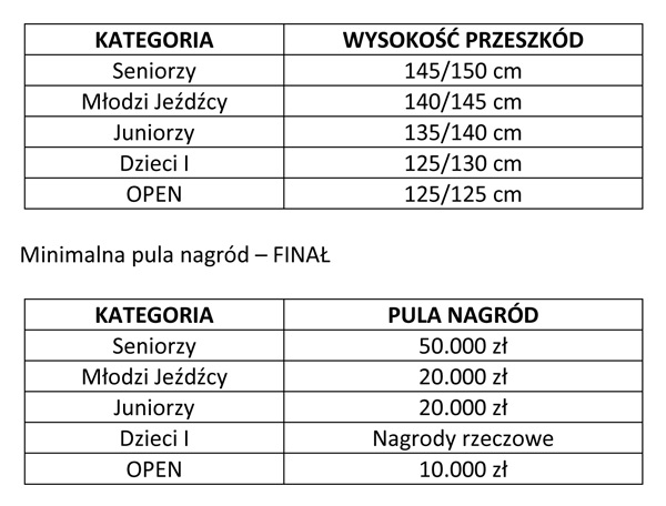 - Juniorzy - 135 cm - pula nagród – 5 000 zł