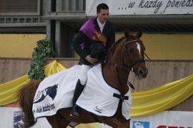 Za nami pierwszy dzień zmagań w ramach V kwalifikacji PGNiG Halowego Pucharu Polski w skokach przez przeszkody we Wrocławiu. W najtrudniejszym piątkowym konkursie klasy CC, który był pierwszym sprawdzianem przed niedzielnym konkursem Grand Prix wystartowało 60 par. 15 z nich zaprezentowało bardzo wysoką formę pokonując parkur bezbłędnie. Był to konkurs na czas, a najlepiej, z szybkim pokonywaniem 10 przeszkód o wysokości 140 cm, poradził sobie lider rozgrywek PGNiG HPP Andrzej Głoskowski z BKJ Bogusławice na koniu Imequyl. Niewiele wolniejsi byli od niego: Marek Lewicki z Czahary Pogorzelica (widać, że jego Albin wraca po przerwie do wysokiej formy jaką prezentował w poprzedniej edycji Pucharu) i Łukasz Wasilewski z HBC Lasocice na koniu Wavantos. Oni zajęli odpowiednio pozycje 2. I 3..