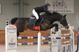 W trzeciej kwalifikacji PGNiG Halowego Pucharu Polski w skokach przez przeszkody w najważniejszej kategorii seniorów wystartowało 31 par. Parkur podstawowy Grand Prix Leszna bezbłędnie pokonało 10 z nich. Rozgrywka była bardzo emocjonująca. Najpierw niezły czas osiągnęła młoda, mało znana amazonka KJ Szczepanek Kamianka Dorota Waskiel na koniu Finnigan. Jadący chwilę po niej Dawid Kubiak na koniu Limbo był od niej o zaledwie pół sekundy wolniejszy. Jednak prawdziwych emocji dostarczyli kibicom dwaj ostatni na liście startowej zawodnicy. Jarosław Skrzyczyński z KJ Agro-Handel Śrem na koniu Litell Men wykonał kilka krótkich najazdów i w pełnym galopie poprowadził swojego konia do ostatniej przeszkody. Nic nie zrzucił, a jego czas był lepszy od prowadzącej o prawie sekundę. Jednak jadący zaraz po nim lider rozgrywek, zwycięzca HPP z przed roku Andrzej Głoskowski z BKJ Bogusławice na koniu Imequyl zrobił to samo ale jeszcze precyzyjniej. Wygrał i utrzymał pierwsze miejsce w rankingu z przewagą nad liderami na tyle dużą, że on już teraz może spokojnie przygotowywać się do janowskiego finału (9 kwietnia). Jarosław Skrzyczyński po dobrej postawie w Jaszkowie awansował na drugą pozycję, którą utracił Krzysztof Ludwiczak, który nie ustrzegł się dziś błędu w przejeździe podstawowym i zawody ukończył na pozycji 13.
