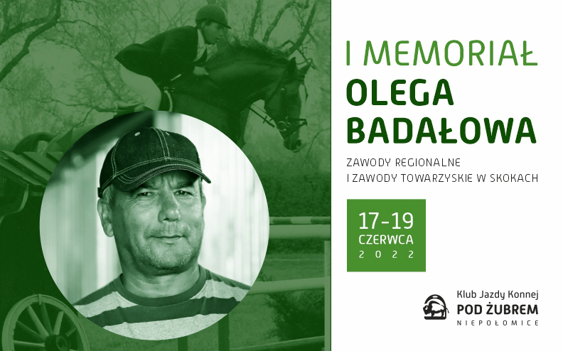 Jesienią zeszłego roku pożegnaliśmy Olega Badałowa – utytułowanego zawodnika, wspaniałego trenera i niezwykle dobrego człowieka. Klub Jazdy Konnej Pod Żubrem pragnie uczcić Jego pamięć cyklicznymi zawodami o nazwie MEMORIAŁ OLEGA BADAŁOWA. Pierwsza edycja tej imprezy odbędzie się w dniach 17-19 czerwca 2022 roku, na malowniczym hipodromie w Niepołomicach, u stóp Zamku Królewskiego, mieście z którym Oleg związany był 27 lat.