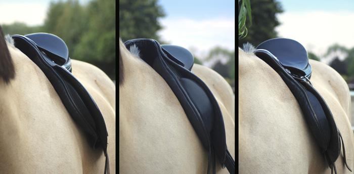 Dobrze dobrane siodło leży idealnie równo na grzbiecie konia podczas spoczynku, jak i w ruchu. Panele uzupełniają kształt pleców, kanał jest na tyle szeroki, aby nie uciskał wyrostków kolczystych kręgosłupa, ale nie za szeroki, aby panele nie spadły poniżej linii żeber. Długość siodła nie wykracza poza klatkę piersiową, a rozstaw i szerokość łęku jest odpowiednio dopasowana do łopatek i kształtu kłębu konia.