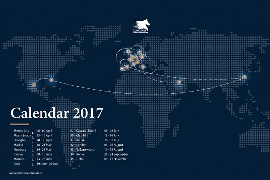 W ostatnich dwóch latach seria LGCT rozpoczynała się zawodami w Miami/USA ale w tym roku zawody te będą drugimi. Inauguracja rozgrywek odbędzie się bowiem w dniach 6-9 kwietnia w Mexico City. Tradycyjnie już Finał LGCT odbędzie się w Doha/QAT ( 9-11.11.2017).