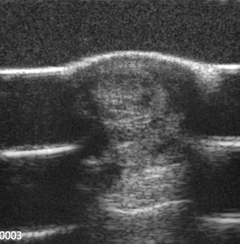 Na zdjęciu obraz USG ścięgien zginaczy kończyny piersiowej konia w przekroju poprzecznym.