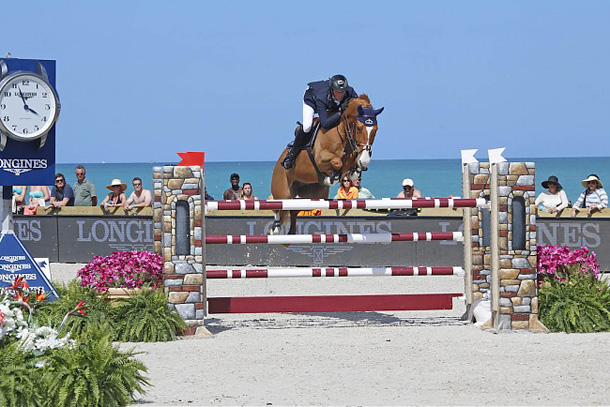 Włoski zawodnik Emanuele Gaudiano, znany jest ze swojej szybkiej jazdy – w swojej karierze wygrał już wiele konkursów szybkości na zawodach CSI5*. Ale nie jest on jeszcze znany w USA większej publiczności, ponieważ startuje on prawie wyłącznie w Europie. Jego pierwszy start w LGCT w Miami rozpoczął jednak bardzo dobrze – zwycięstwem w konkursie zwykłym 150/155 cm., w którym startował na wałachu Casper 232. „To wspaniałe miejsce, z niesamowita atmosferą. Naprawdę mi się tu podoba!” – powiedział Włoch po swoim sukcesie. Nie dał on szansy innym zawodnikom, robiąc wszędzie gdzie było to możliwe o jedną foule mniej. Jego czas był o ponad 2 sekundy lepszy od tego, jaki osiągnął McLain Ward/USA na wałachu Rotchild. Również Bertram Allen z Irlandii, który startował na wałachu Quiet Easy, nie dał rady pokonać Gaudiano i zajął ostatecznie trzecie miejsce.