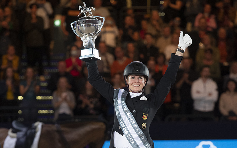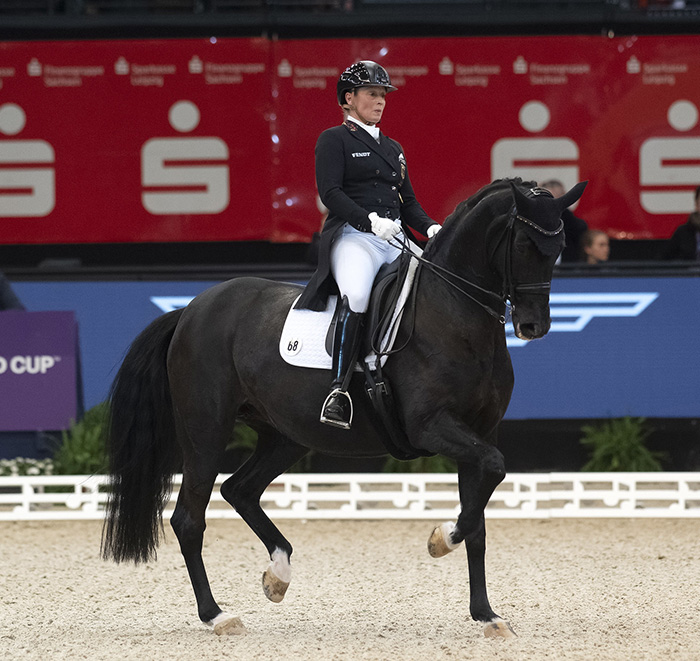 Gdy Jessica von Bredow-Werndl/GER wjechała na arenę jako ostatnia, zrobiło się cicho na hali w Lipsku. Każdy chciał się delektować jej przejazdem na 15-letniej klaczy TSF Dalera BB. Też dlatego, że był to ostatni start tej pary przed kilkumiesięczną przerwą. Amazonka jest w 6 miesiącu ciąży i niestety w tym roku nie wystartuje w Mistrzostwach Świata w Herning. A złotego medalu MŚ brakuje jej obecnie w kolekcji. Jej wczorajszy przejazd jak zawsze był pełen rozluźnienia i harmonii pomiędzy jeźdźcem, a koniem. Minimalne użycie pomocy robiło wrażenie, że Dalera wykonuje elementy z pamięci i z własnej woli. Maksymalne oceny za piruet w lewo, piaff i przejścia pomiędzy pasażem i piaffem przyczyniły się do uzyskania wyniku 90,836%. A to oznaczało, że Jessica von Bredow-Werndl wygrała po raz pierwszy w swojej karierze Finał Pucharu Świata. I było to historyczne zwycięstwo bowiem nigdy wcześniej żadna/żaden zawodnik z Niemiec nie zwyciężył w Finale rozgrywanym w swojej ojczyźnie.