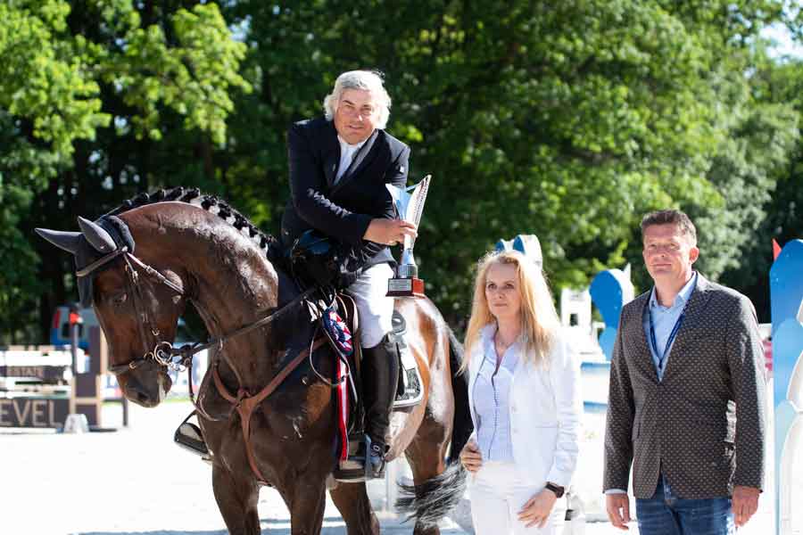 W najważniejszym konkursie zawodów – Grand Prix CSI3* - zwyciężył reprezentant Luksemburga, zawodnik, który bardzo chętnie odwiedza zawody w Polsce, Marcel Ewen. Parkur, z którym zmierzyło się 38 par, okazał się bardzo wymagający. Do rozgrywki zakwalifikowało się tylko trzech zawodników, kolejne cztery pary nie miały błędów, ale punkty karne za przekroczenie normy czasu zamknęły im drogę do walki o zwycięstwo. Marcel Ewen na klaczy Chimaira PJ pojechał bardzo płynnie i szybko i ukończył przejazd w czasie 48,31 s. Miejsce drugie zajęła doskonale spisująca się na tych zawodach reprezentantka Danii, Maria Hjorth Frederiksen na klaczy Double (0/48,54 s). Polskich kibiców najbardziej ucieszyło jednak trzecie miejsce Grzegorza Kubiaka, który dziś dosiadał ogiera Szuler. Para ta miała w rozgrywce jeden błąd w czasie 48,71 s. Podczas zawodów w Ciekocinku Szuler i Grzegorz Kubiak trzykrotnie zajmowali wysokie miejsca (2x3 oraz 1x4) w konkursach zaliczanych do Longines Ranking.