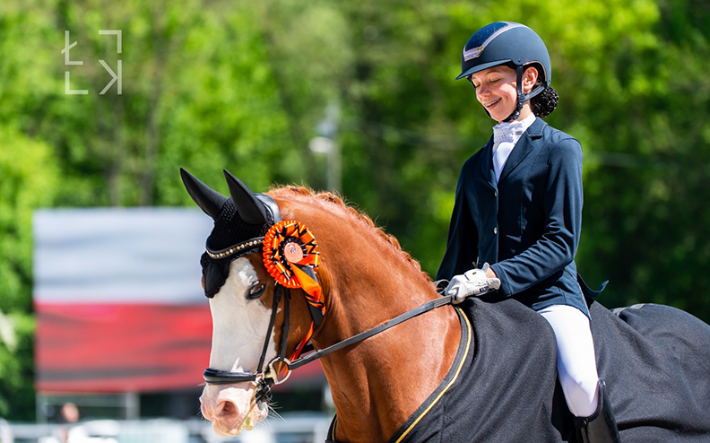 Klasyfikacja medalowa rozstrzygnęła się też w ramach konkursu drużynowego Dzieci. W sobotę wystartowały dwie polskie amazonki i obie uzyskały bardzo dobre wyniki, ale niestety tylko jedna zdobyła awans do finału indywidualnego. Liwia Strzeszewska startująca na małopolskim wałachu Harley Zof została oceniona na 71,742% i tę parę zobaczymy jutro o 8:14. Niewiele do awansu zabrakło Julii Wójtowicz, która razem z ogierem rasy SP Shadow uzyskała wynik 71,175% i zajęła ostatecznie 22 miejsce. Startujące wczoraj Aleksandra Rozesłańska oraz Aleksandra Machniewicz zajęły odpowiednio 34 i 45 miejsce. Polska drużyna zmagania zakończyła na 8 miejscu z łącznym wynikiem 211,267%. Wygrała ekipa Holandii uzyskując w sumie 243,434%.