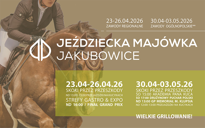 Zawody rozgrywane są w formule 4 dniowej, a przy zawodach krajowych dopisane są także konkursy regionalne L i P. Jeździecka Majówka to tak naprawdę dwutygodniowy Tour ( ZR 23-26.04, ZO2* 30.04-3.05) od lat uważany za najbardziej popularną imprezę w KJ Osadkowski. Zgłoszenia pękają w szwach, ale oczywiście zapraszamy jeszcze do nadsyłania zgłoszeń uczestników PLJ, a szczególnie jeźdźców GP bo dla nich organizator przewiduje specjalne miejsca w systemie zgłoszeniowym. Jeździecka Majówka to też wspaniały czas dla kibiców i sympatyków jeździectwa. Otwarcie sezonu grillowego, rozbudowana strefa Expo, atrakcje artystyczne i oczywiście, te o tematyce jeździeckiej, to dodatkowe powody dla których warto zajrzeć do Jakubowic na przełomie kwietnia i maja. Jeżeli jednak nie możecie kibicować zmaganiom osobiście, zapraszamy do śledzenia rozgrywek on- line na platformie Świat Koni/ Clip My Horse. Transmisja obejmie konkursy Finałowe.