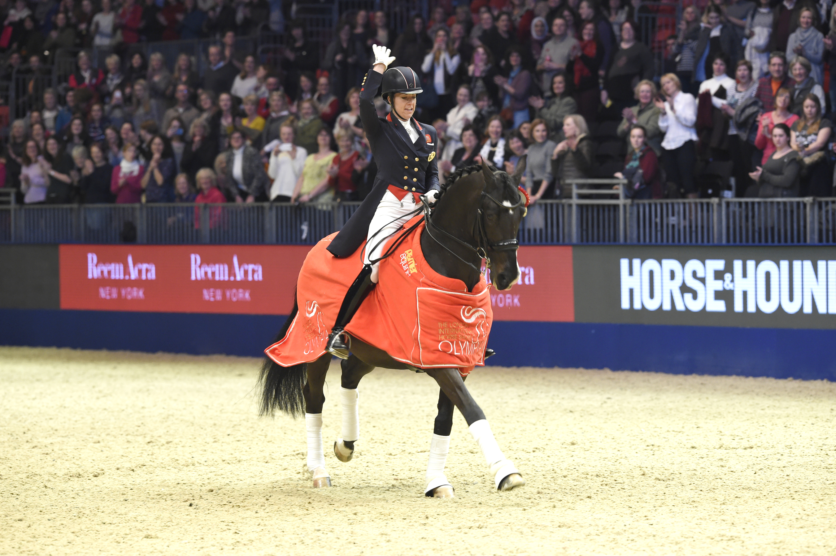 Zmagania sportowe jak zwykle rozpoczęli zawodnicy dyscypliny ujeżdżenia. Wszyscy byli bardzo ciekawi występu Charlotte Dujardin/GBR która tym razem nie przywiozła ze sobą wałacha Valegro, tylko wystartowała na ogierze Utophia. Po raz ostatni startowała na nim 19 miesięcy temu, podczas zawodów Royal Windsor, a Utophia swój ostatni start w zawodach miał prawie rok temu pod Carlem Hesterem. Ogier ten zaprezentował się wczoraj, jakby nie miał żadnej przerwy w startach, co potwierdził uzyskany wynik – 77,46%, najlepszy w konkursie. Tym samym Dujardin po raz piąty z rzędu zwyciężyła w konkursie Grand Prix w Olympii. Drugie miejsce zajął Carl Hester/GBR na wałachu Nip Tuck z wynikiem 76,66%. Na trzeciej pozycji natomiast uplasował się Hans Peter Minderhoud/NED na Glock’s Flirt z wynikiem 76,12%.