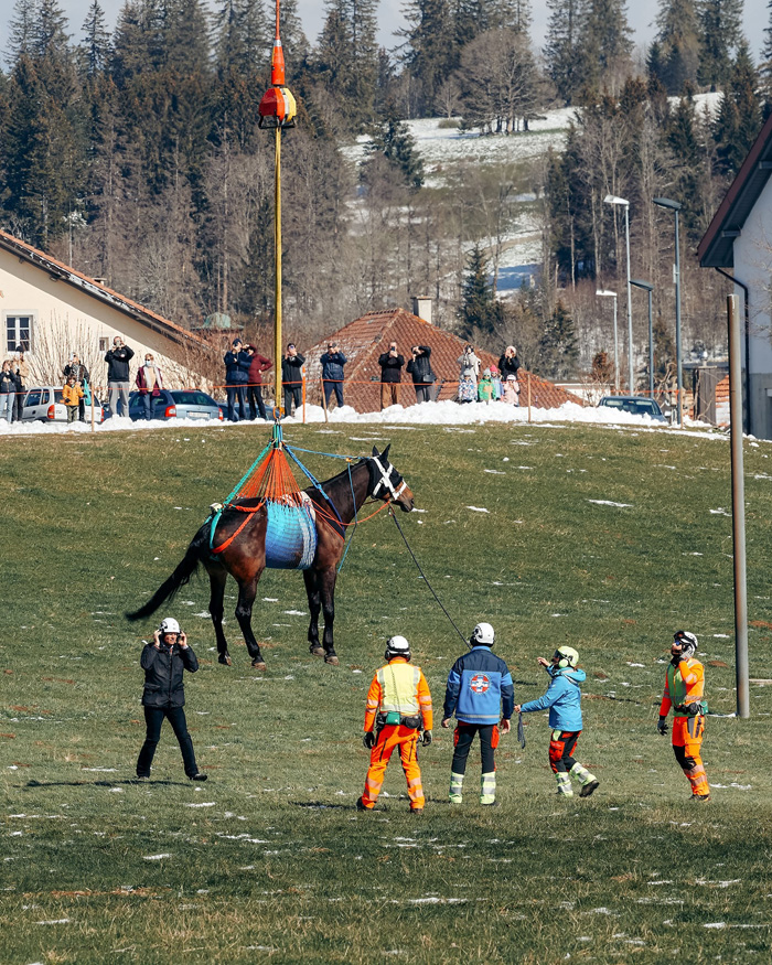 Armia szwajcarska wspólnie z Kliniką Medycyny Weterynaryjnej Szpitala Uniwersyteckiego w Zurychu pracują nad tym, by opracować stosowne procedury, które umożliwią bardzo szybki transport konia z trudno dostępnych terenów do kliniki. Terenów, do których dotarcie z przyczepą transportową czy trailerem jest bardzo trudne i czasochłonne, a w niektórych przypadkach wręcz niemożliwe.