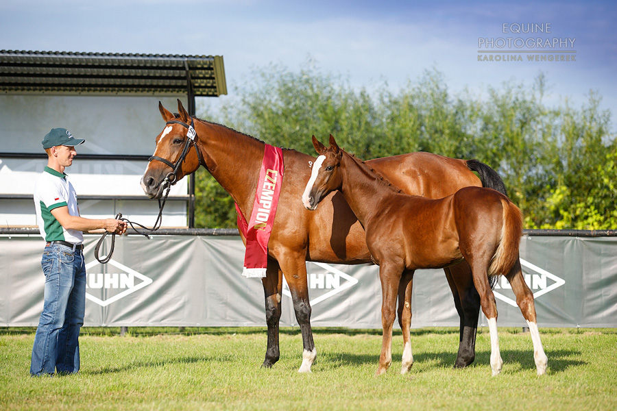 Źrebięta przy matkach oceniane były w trzech kategoriach. Czempionką w kategorii źrebiąt ujeżdżeniowych została KALAIS W (DE BEAU x KARETINA W), hod. Agnieszka Wilczyńska, wł. Agnieszka Wilczyńska.