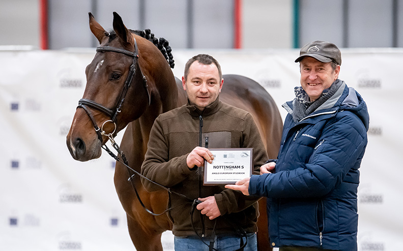 Nottingham S to niespełna 4-letni ogier rasy SP wyhodowany przez Huberta Szurika. Matką konia jest klacz Nestia S (SP, Romulado x Nimrod B), która dała wszystkim znanego ogiera Nevados S, startującego pod Gregory Watheletem/BEL. Ten koń to m.in. aktualny brązowy medalista IO w klasyfikacji drużynowej. Ojcem ogiera Nottingham S jest Glasgow van’t Merelsnest (BWP, Nabab de Reve x Darco). Tego konia z powodzeniem na poziomie 165 cm dosiadał Jur Vrieling. Razem byli m.in. częścią zwycięskiej drużyny podczas finału FEI Nations Cup w 2017. Rodowód ogiera Nottingham S skacze właściwie sam, a o trafności połączenia genów może świadczyć fakt, że hodowca zdecydował się na nie jeszcze dwukrotnie. W 2020, a także w 2021 roku urodzili się pełni bracia ogiera Nottingham S.