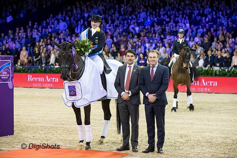 Udział w tegorocznym Finale PŚ jest jednym z jej celów na ten rok i można powiedzieć, że dzisiaj w Amsterdamie zarezerwowała już sobie bilet do USA. Wystartowała ona w trzech konkursach w tym sezonie i trzykrotnie zwyciężyła. Dziś w Amsterdamie na klaczy Weihegold OLD osiągnęła wynik 90,720% co jest nowym rekordem tej pary i jednocześnie najwyższym wynikiem jaki Isabell Werth osiągnęła w swojej karierze. A publiczność nagrodziła jej przejazd owacjami na stojąco. „Jestem taka szczęśliwa, jesteśmy w najlepszej formie i mam nadzieję, że uda się ja utrzymać przez tak długo jak to możliwe. Weihegold będzie miała teraz przerwę a ja spróbuję zakwalifikować jeszcze Don Johnsona lub Emilio, tak aby w razie czego mieć drugiego konia do dyspozycji w Filane PŚ.” – powiedziała amazonka.