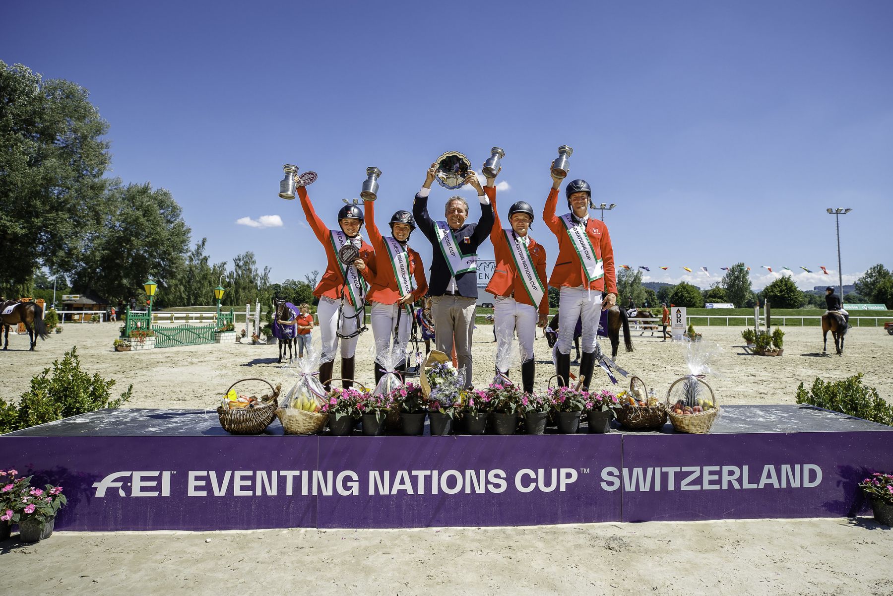 „Chyba nie da się być bardziej zadowolonym niż ja teraz jestem. Cieszę się, że razem z zespołem odnieśliśmy kolejne zwycięstwo. Grandeur był wspaniały przez całe zawody. I udało nam się wytrzymać presję startując u siebie.” – powiedział Robin Godel, który ukończył konkurs z wynikiem 32,1 pkt. W ekipie Szwajcarii startowali jeszcze Melody Johner na Toubleu de Rueire (41,5 pkt – 4 m), Patrick Rüegg na Fifty Fifty (54,1 – 8 m) i 20-letnia Nadja Minder na Kabuga (63,8 pkt – 14 m). To dało zespołowi Szwajcarii końcowy wynik 127,7 pkt.
