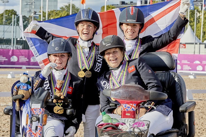 Julie Peyn, 55-letnia reprezentantka Wielkiej Brytanii swój pierwszy złoty medal zdobyła w poniedziałek. Wczoraj wiedziała doskonale, że od jej wyniku zależy zdobycie złotego medalu w klasyfikacji zespołowej przez zespół Wielkiej Brytanii. Dosiadała ona konia, na którym jeździ zaledwie od 3 miesięcy – klaczy Athene Lindebjerg, która pod Sophie Christiansen zdobyła 3 złote medale podczas Igrzysk Paraolimpijskich w Londynie w 2012. Peyn, mimo dużego stresu, pojechała wczoraj doskonale uzyskując wynik 78, 107%.Dzięki temu WIelkia Brytania zwyciężyła z wynikiem 223, 776%.