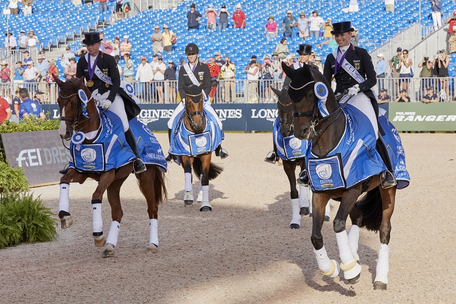 Cztery lata temu Isabell Werth z Bella Rose przyczyniły się do zdobycia przez zespół Niemiec złotego medalu podczas WEG w Caen. Po konkursie Grand Prix klacz zakulała i musiała zostać wycofana z kolejnych konkursów. Jej problemy zdrowotne trwały bardzo długo i mało kto wierzył, że Bella Rose jeszcze kiedykolwiek wróci na czworoboki. Isabell Werth wierzyła w tego konia i razem ze swoim zespołem i właścicielką klaczy, Madeleine Winter-Schulze, robiła wszystko co było możliwe, by klacz wróciła do pełni zdrowia. Nagrodą za cierpliwość i ogrom włożonej pracy było zdobycie złotego medalu wczoraj w Tryon.